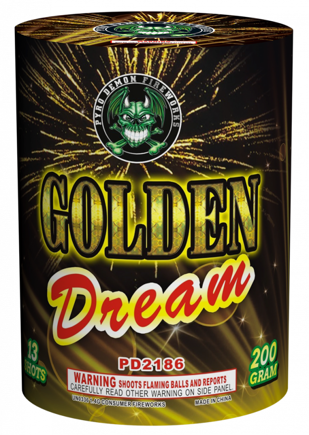 Home / Shop / SHOP / MULTI-SHOT AERIALS / MULTI-SHOT 200 GM AERIALS / 13 Shot Golden Dream