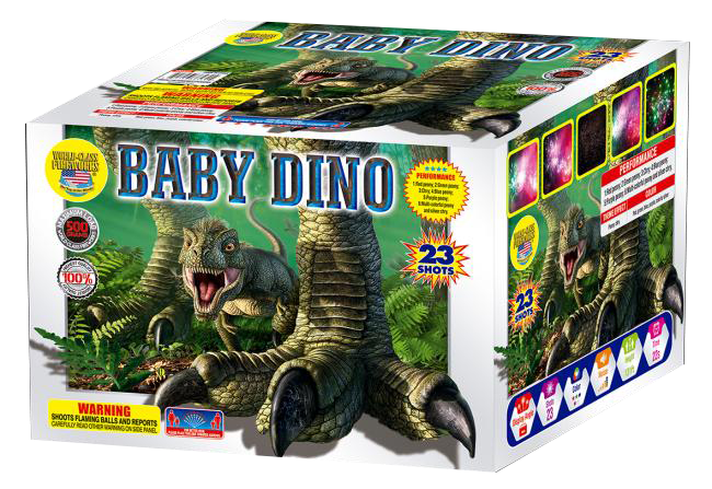 Home / Shop / SHOP / MULTI-SHOT AERIALS / MULTI-SHOT 500 GM AERIALS / 23 Shot Baby Dino